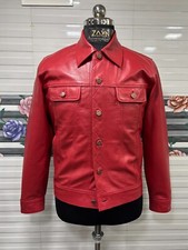 Veste camionneur rouge en cuir d'agneau véritable pour hommes style western...