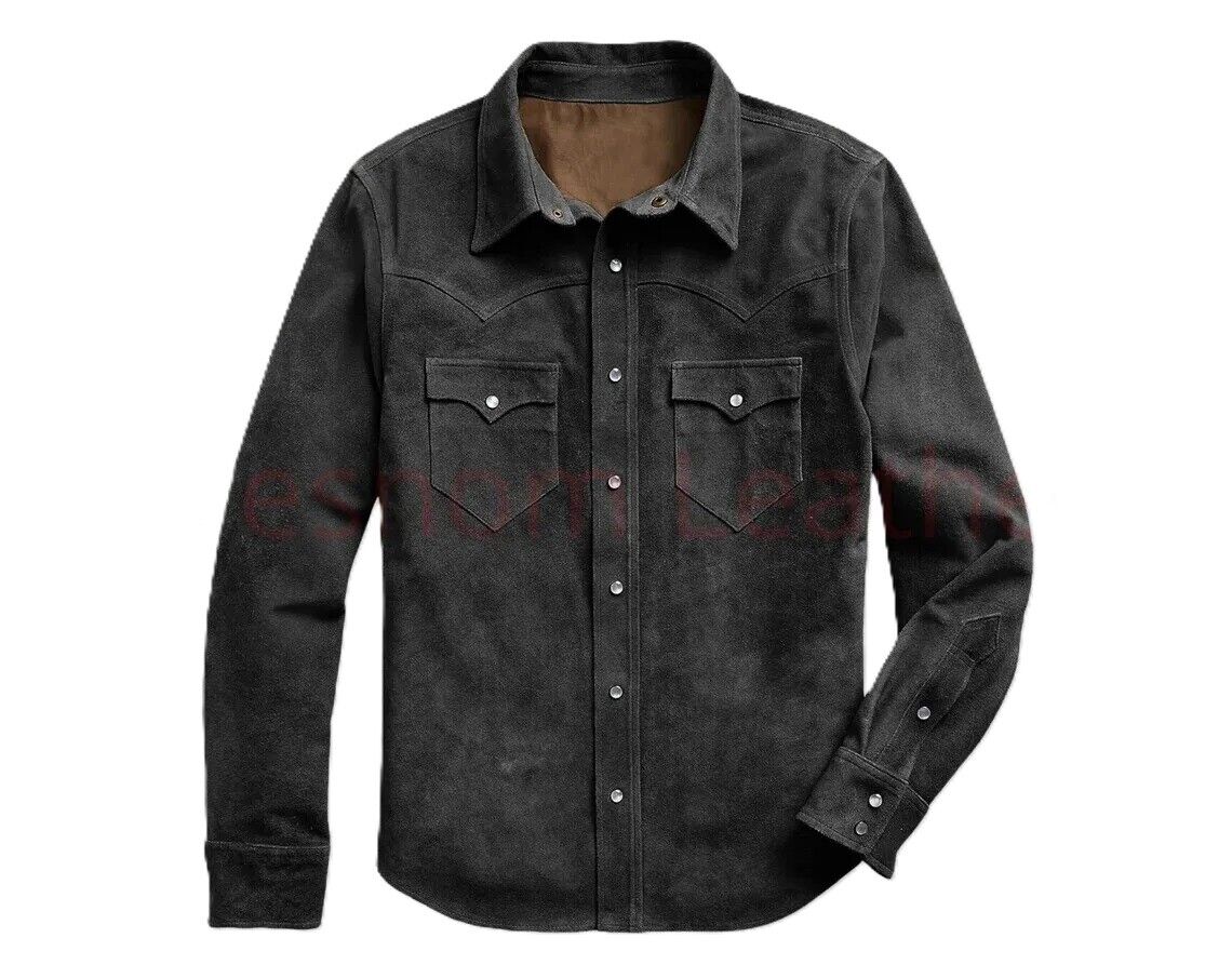 Veste camionneur en cuir véritable 100 % daim pour hommes chemise en daim...