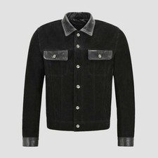 Veste camionneur en cuir noir pour homme 100 % pure peau d'agneau veste...