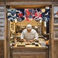 Rideau de porte court Noren 85x30cm fabriqué au Japon Lucky "Ripple Goldfish"...