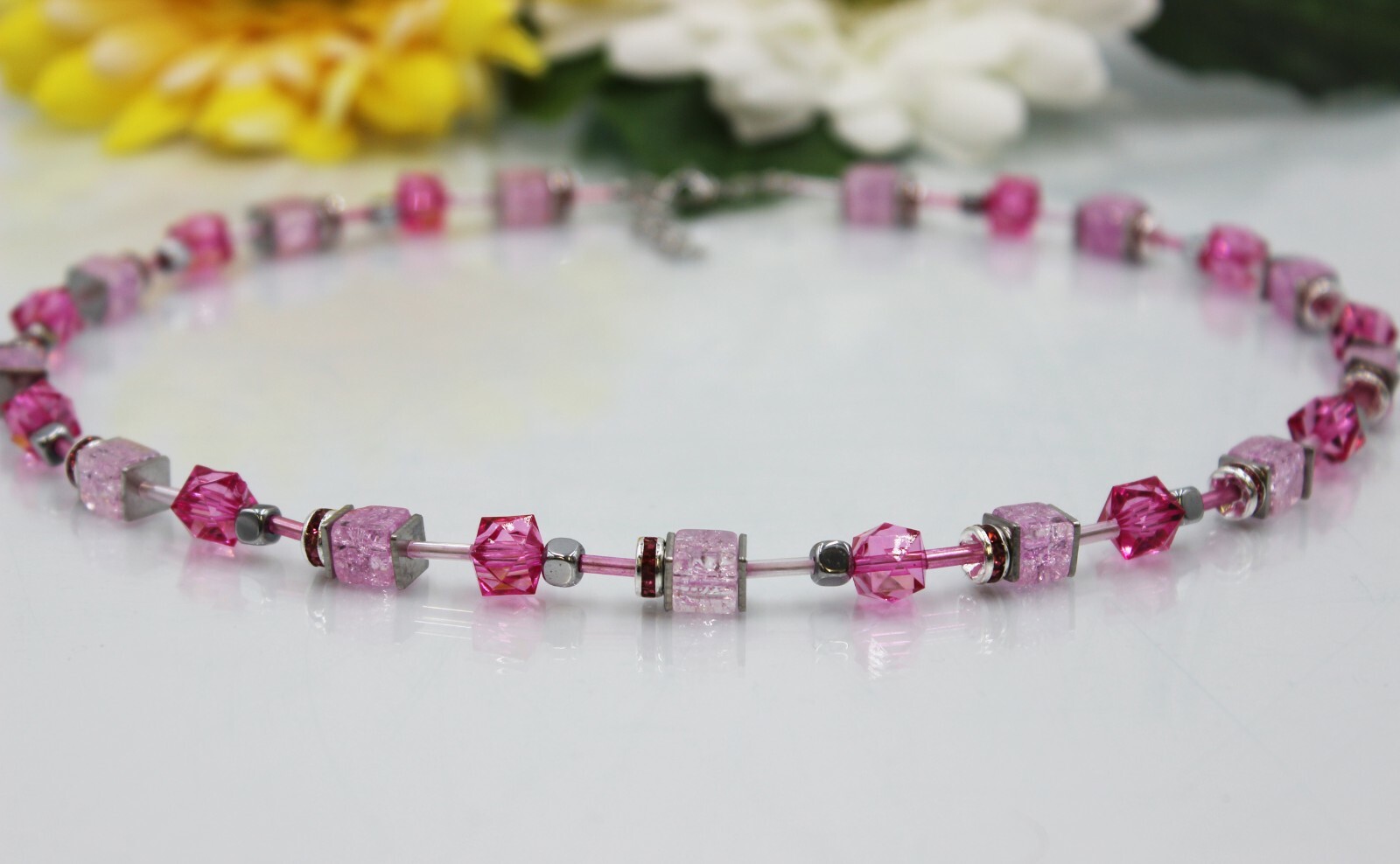 - Superbe collier avec des cubes en acrylique d'env. 7 mm, verre cube craquelé rose env. 6 mm, cubes d'hématite env. Rondelles de strass en alliage métallique de 4 mm et perles à épingles. Chaque perle peut varier légèrement en couleur et en forme. Ceci est lié à la production, est très individuel pour chaque fabricant et ne peut nécessairement être évité. Chaque perle est un peu différente et donc unique. Les produits naturels tels que les perles en pierres précieuses sont toujours uniques. C'est pourquoi des écarts par rapport à la photo du produit sont toujours possibles.. Pour les envois de marchandises, la livraison peut prendre plus de temps pour des raisons postales. Si vous avez besoin de l'article plus rapidement, veuillez sélectionner le mode d'expédition « Lettre » lors du paie.