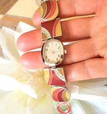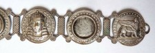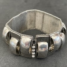 Bracelet articulé en métal argenté + cabochon vert vers 1930 style ethnique