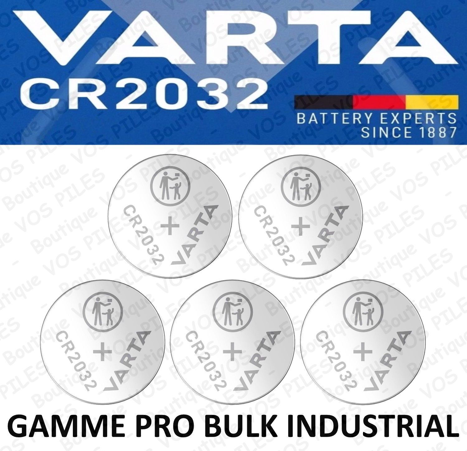 Equivalences :2032 BR2032 CR2032 DL2032 ECR2032 KCR2032 EA-2032C EL2032. Modèle :CR2032 / DL2032. Fabricant :Varta Industrial. Capacité :230 mAh - Tension : 3V. Technologie :Lithium.