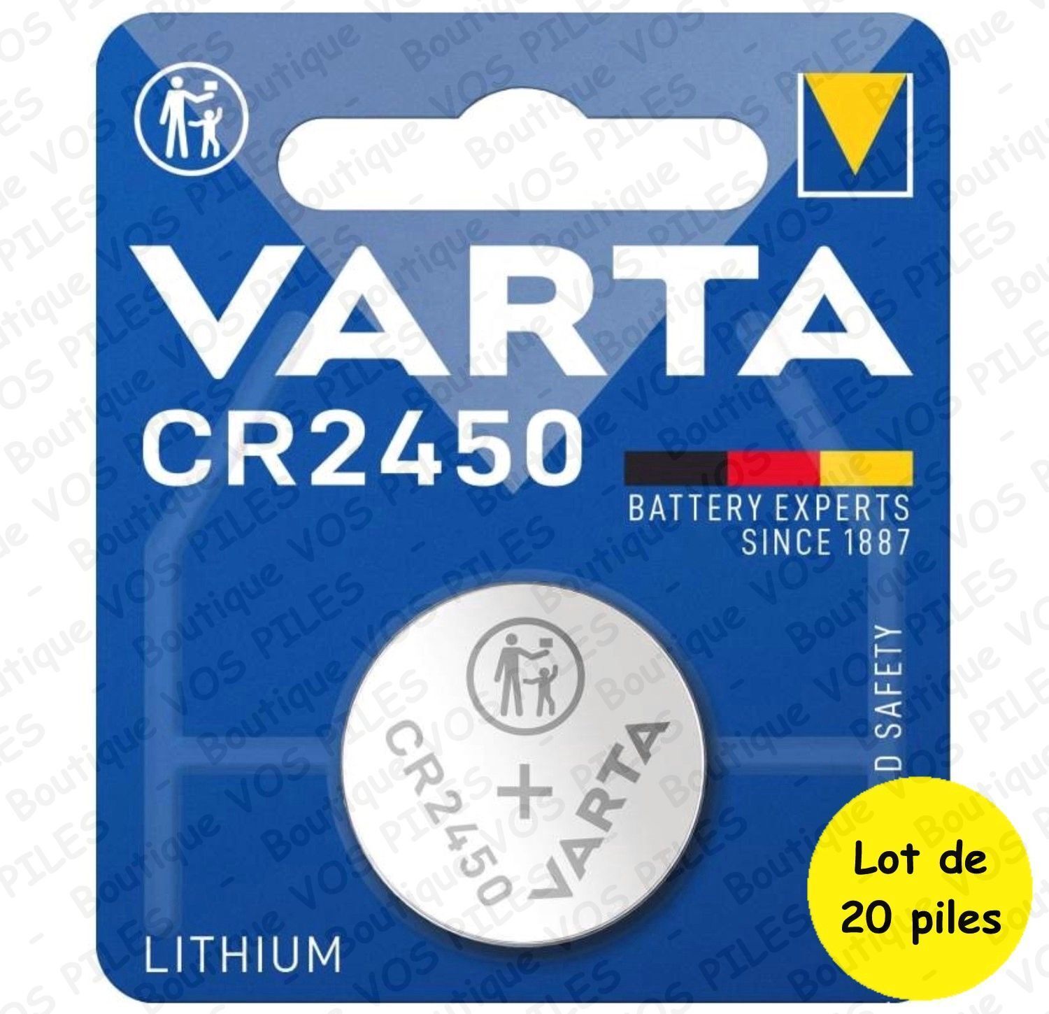 Equivalences :2450 BR2450 CR2450 DL2450 ECR2450 KCR2450 EA-2450C EL2450. Modèle :CR2450 / DL2450. Fabricant :Varta. Technologie :Lithium. Capacité :570 mAh - Tension :3V.