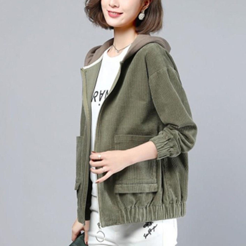 Veste courte décontractée à capuche femme en velours côtelé pour mode print