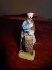 ANCIENNE CRECHE DE NOEL NATIVITE 16 SANTONS AVEC ETABLE EN PLATRE BOEUF H 13CM
