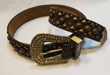 Brown snake print leather. 4 rows of beautiful clear riveted rhinestones adorn the length of the belt. Removeable buckle.
