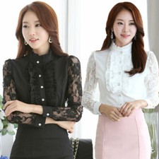 Chemisier élégant en dentelle florale pour femme, t-shirt à manches longues bouffantes et col montant, décontracté N'oubliez pas qu'en raison des effets d'éclairage et des paramètres de luminosité/contraste du moniteur, la tonalité de couleur de la photo du site Web et celle de l'article réel peuvent être légèrement différentes. C'est en taille asiatique, splus petit que la taille occidentale, par exemple au Royaume-Uni, aux États-Unis et en Australie. Veuillez vérifier attentivement les mesures avant de faire un achat. De plus, veuillez permettre une différence de 1 à 3 cm en raison de la mesure manuelle. Taille : taille unique pour UK 6-12 (longueur 21,6 pouces/55 cm, manche 22,0 pouces/56 cm, buste 33,8 pouces/86 cm, tour de taille 33,0 pouces/84 cm) Couleur : rose, noir, viole.