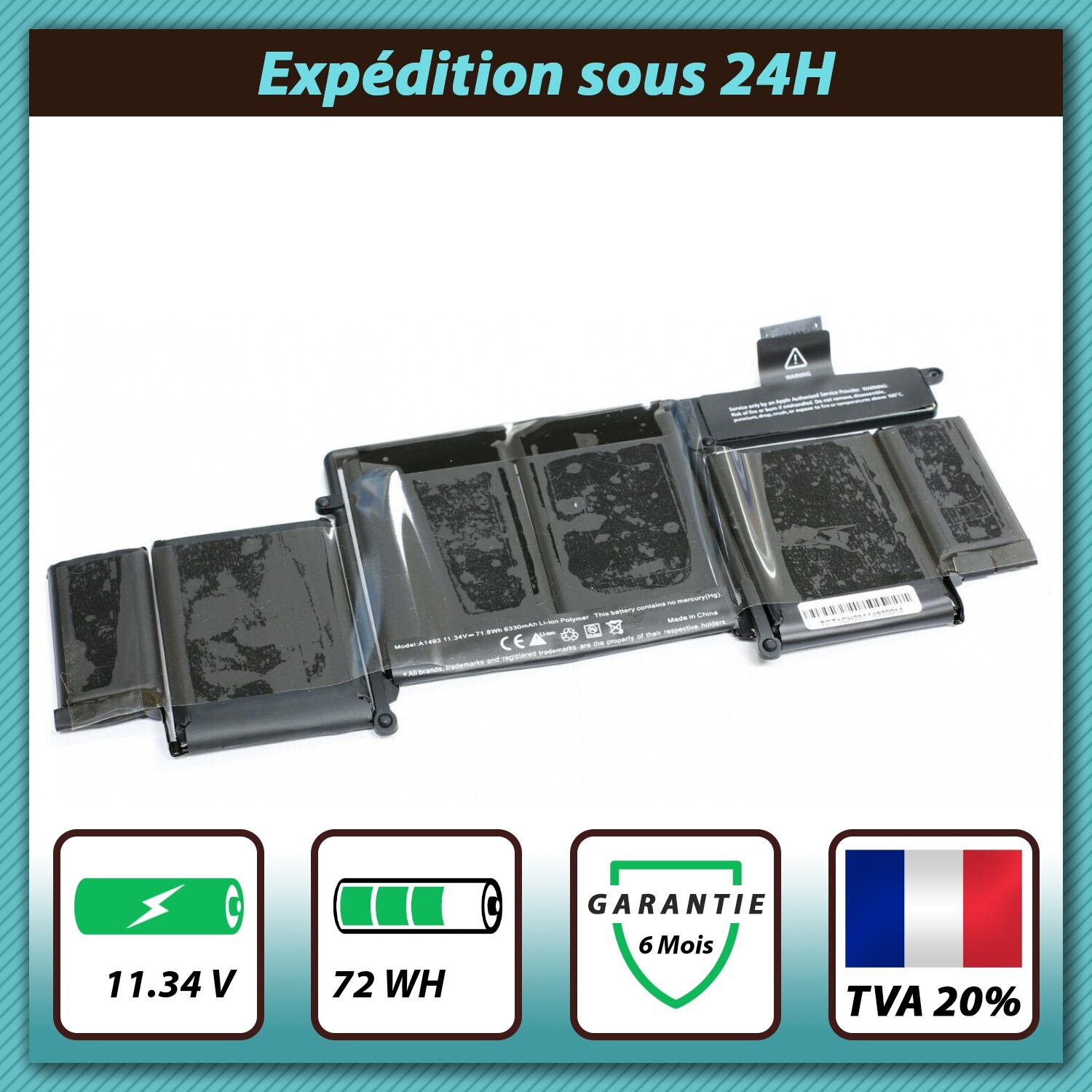Capacité : 6330mAh. BATTERIE COMPATIBLE POUR APPLE MACBOOK PRO A1493. À prendre en compte avant de valider la commande Veuillez comparer avec votre modèle.