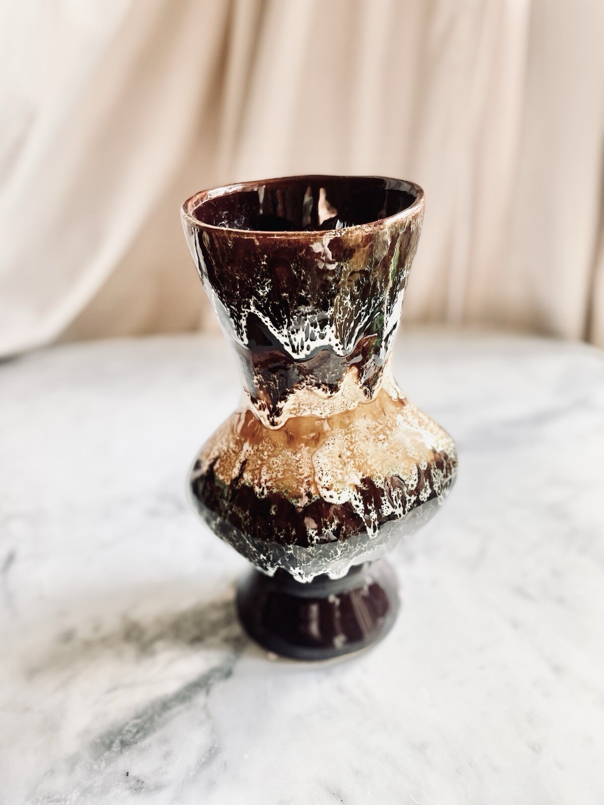 GRAND VASE VINTAGE VALLAURIS SIGNE Coloré Marron Ancien Rétro Fait Main France