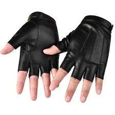 Gants Mitaine de Conduite en Cuir Noir en Crochet de Coton Blanc Pour Hommes Sty