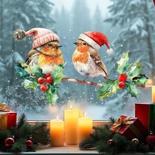 Autocollant de fenêtre Oiseaux de Noël, accessoires de décoration de