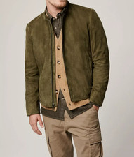 Veste en daim vert pour hommes, veste chemise en daim, manteau en cuir fait...
