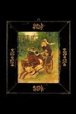 PEINTURE À L'HUILE SUR PANNEAU ÉPOQUE XVIIIème CHIEN D'ATTELAGE SIGNÉ