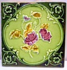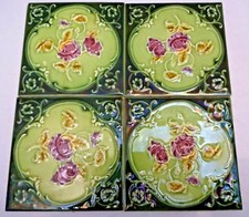 La condition est bonne, pas de puce et de fissures. Faire en Angleterre.Circa 1920.Size de chaque carreau est de 6 x 6 pouces.et total 4 pièces La taille du jeu est de 12 x 12 pouces. Vergique des fleurs violettes et des carreaux décoratifs verts. Les retours seront acceptés dans les 30 jours après la livraison du produit et l'acheteur paiera les retours. L'acheteur avant de recevoir supportera également des droits de douane, le cas échéant, et effacera le produit N'hésitez pas à nous contacter via ebay contactez-nous à tout moment et nous répondrons dès que possible dans les 48 heures Ces frais supplémentaires sont la responsabilité de l'acheteur. L'acheteur doit effacer les douanes s'il y a une prise en charge dans votre pays. Veuillez vérifier auprès du bureau des douanes de votre p.