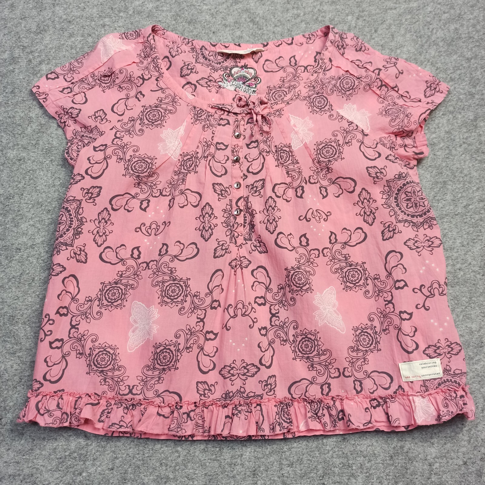 Odd Molly Blouse 2 - M Rose Coton Tissé Boho Top Batik Papillons 613