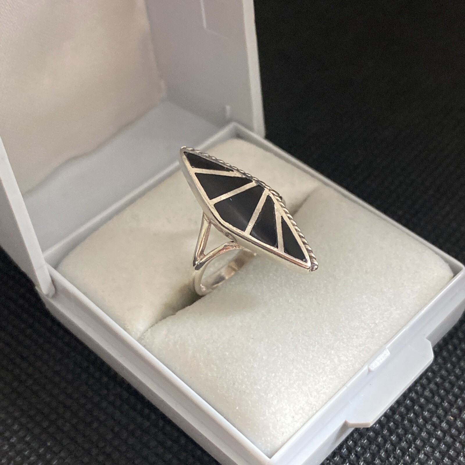 Ancienne Bague En Argent Massif 925 Alliance Anneaux Créateur Noir