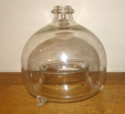 Ancien Piège à Guêpes, à Mouches en Verre Soufflé Tripode. En bon état.