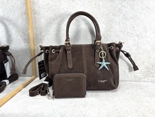 Petites boucles décoratives à la base des anses et bijou de sac rond assorti. Sac à main bicolore bleu grisé et marron - Pratique et décontracté. Un sac idéal pour le quotidien grâce à sa bonne contenance et ses multiples possibilités de porté !