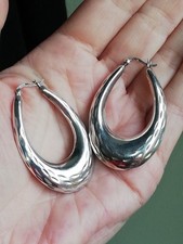 Boucles d'Oreille Créoles en Argent 925/000 Rhodié. Matière : Argent 925/000 Rhodié.