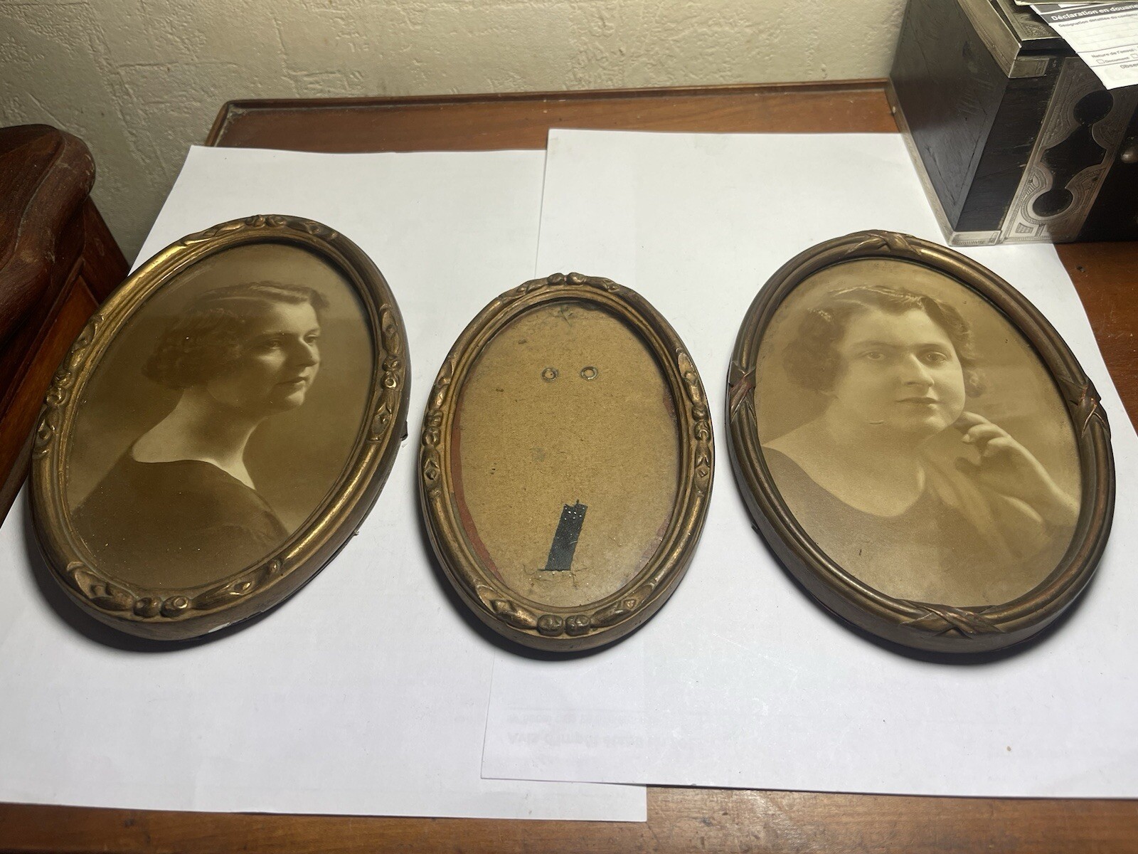 Lot 3 Cadres Ovales Porte Photos En Bois Sous Verre Vers 1920