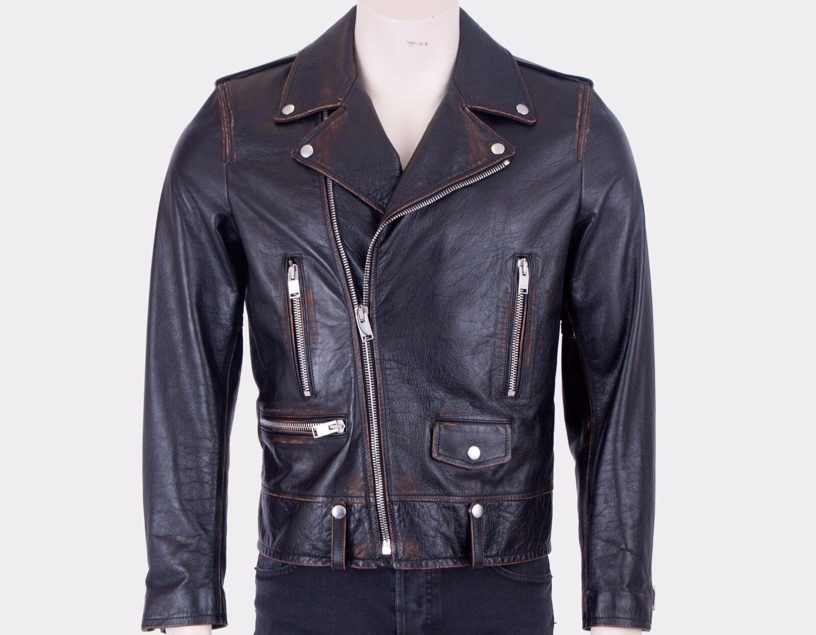 Veste en cuir marron pour hommes, peau de mouton véritable style café motard ...