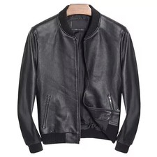 Veste d'hiver en cuir véritable noir matelassé en V Bomber pour hommes col fo...