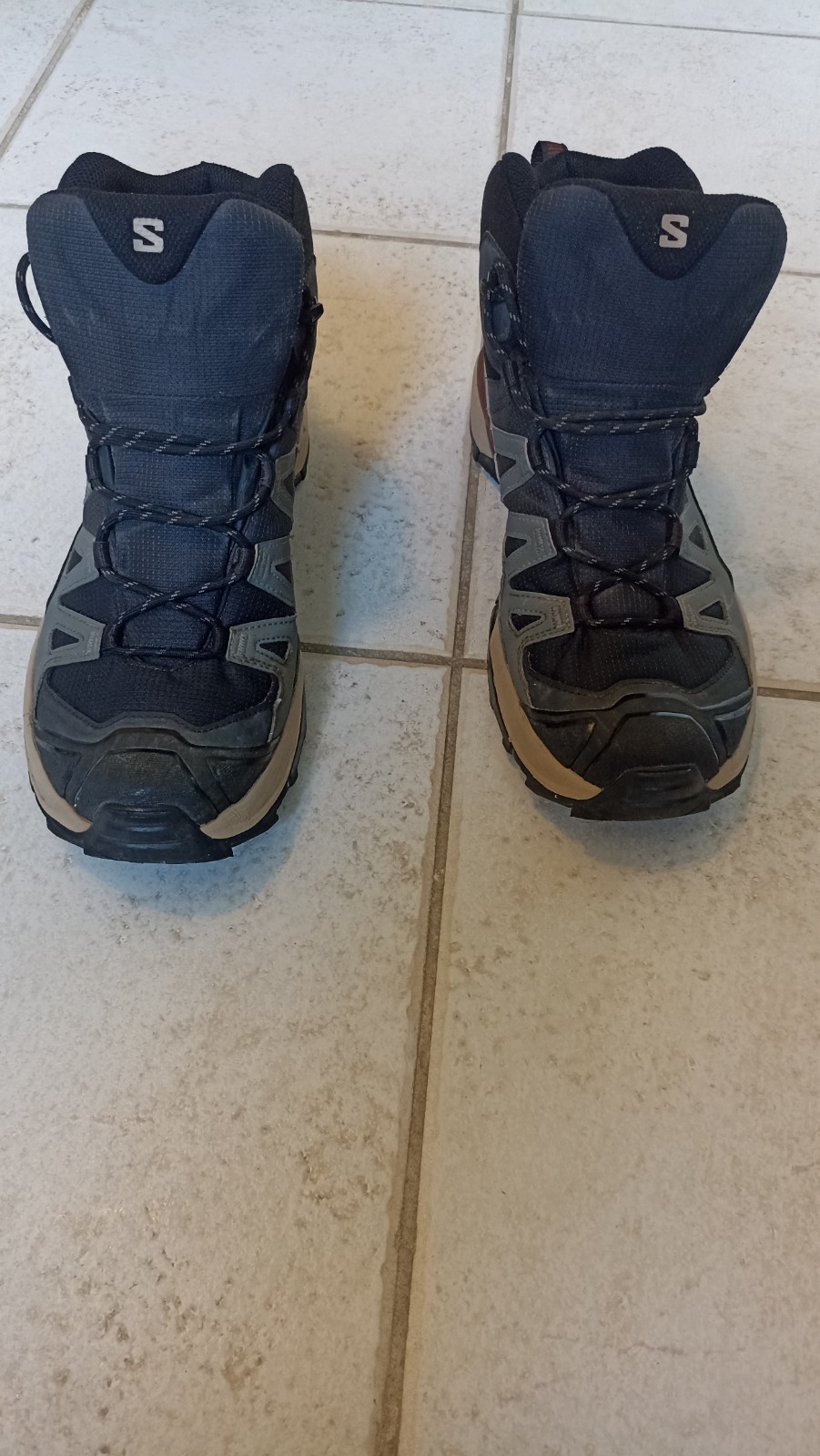 Chaussures Salomon X Ultra 360 Gore-Tex imperméables semi montantes. T 43 1/3. Portées pendant 109 km. Bonne pince-talon.