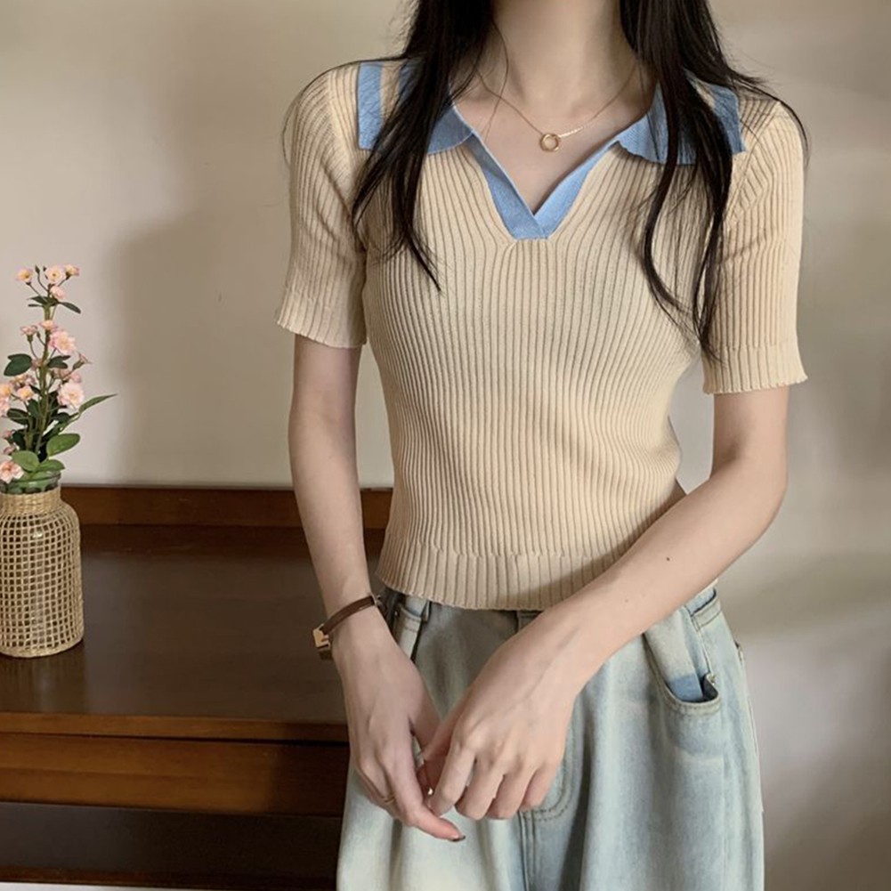 T-shirt femme à manches courtes revers prêt pour l'été dans des couleurs con