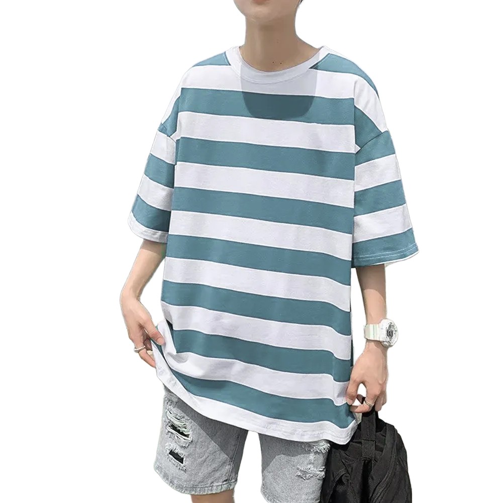 T-shirt oversize rayé manches courtes pour homme confortable col rond
