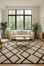 Tapis en laine touffeté à la main au design géométrique, tapis en laine multicolore fait main. Ajoutez une déclaration artistique audacieuse à votre intérieur avec ceTapis en laine touffeté à la main avec un design géométrique multicolore vibrant.