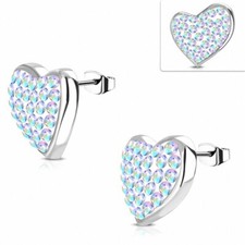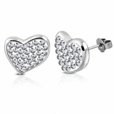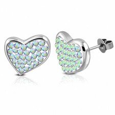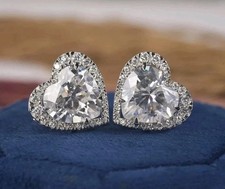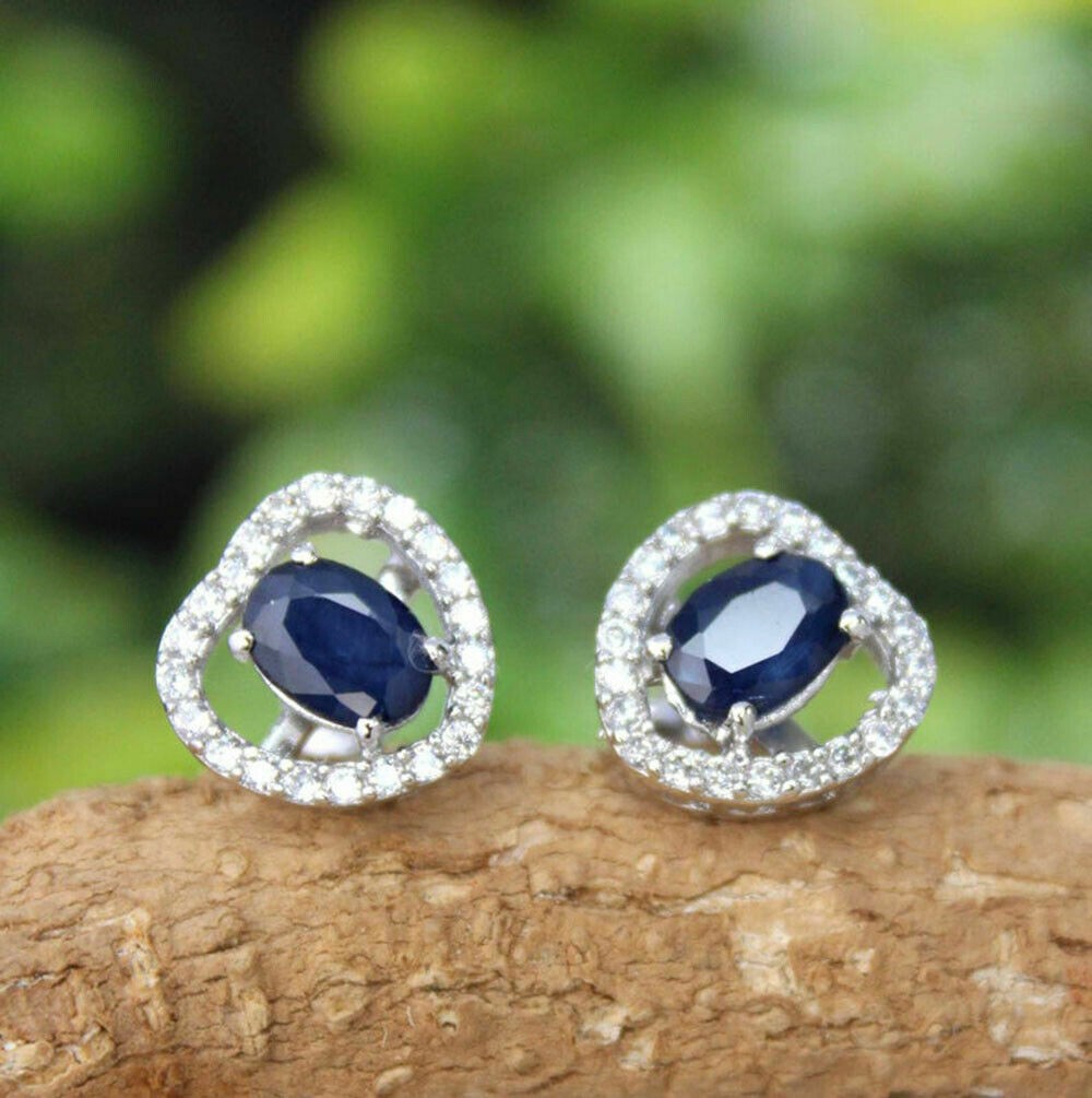 Boucles d'oreilles clous cœur de mariage simulé saphir bleu coupe ovale...