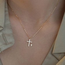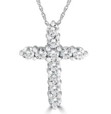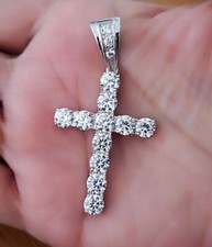 Collier pendentif croix en moissanite véritable coupe ronde 2,5 ct plaqué or ...
