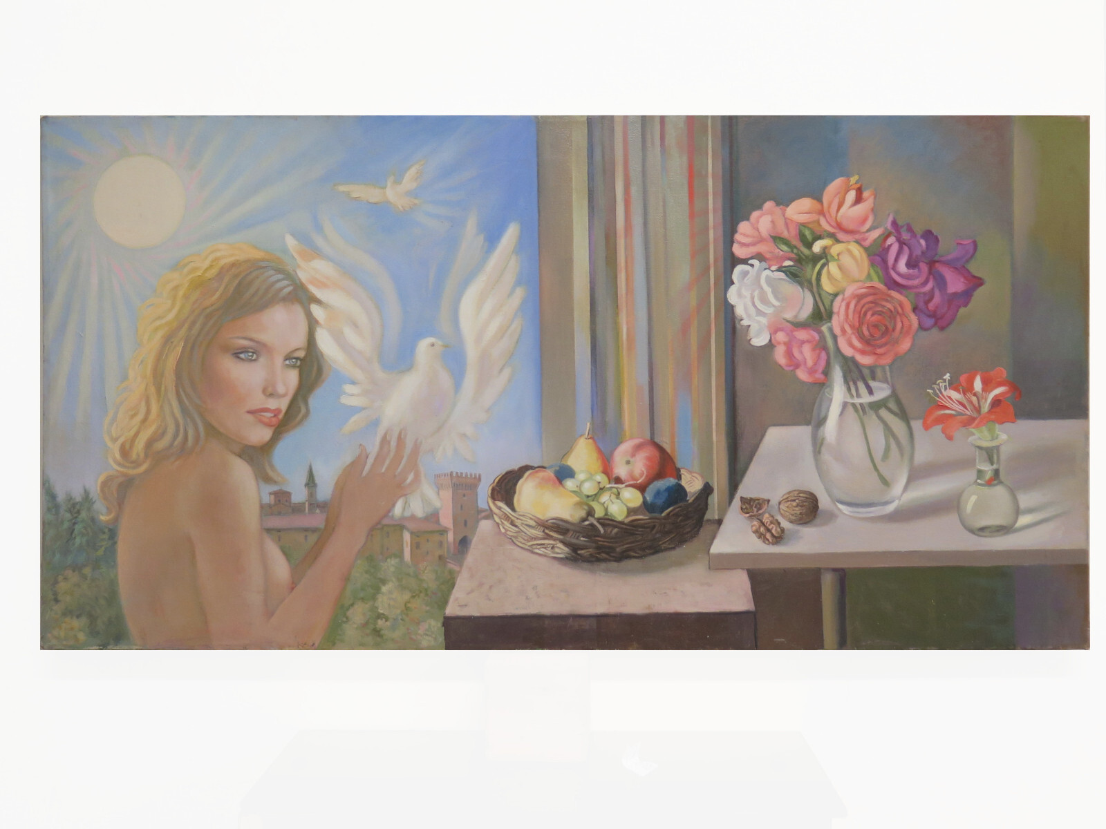 Sujet: notamment une peinture à l'huile sur toile du Maestro Gaetano Pancaldi (1922-2014) dans laquelle on peut voir son talent dans le portrait, dans la représentation des objets et de la lumière. Détails fins et dimensions généreuses de la toile. Auteur: Gaetano Pancaldi (1922-2014) Piumazzo de Castelfranco Emilia (MO). La représentation de la nature et de la vie quotidienne figuraient parmi les sujets de prédilection de l'artiste, très actif et connu dans la région de Modène pour son travail d'affichiste et les nombreuses expositions qu'il a réalisées. Peintre infatigable, Pancaldi a travaillé avec une passion inchangée jusqu'à ces dernières années. Les droits de douane, taxes d'importation et frais de douane ne sont pas inclus dans le prix de l'article ni dans les frais d'expédition. C.