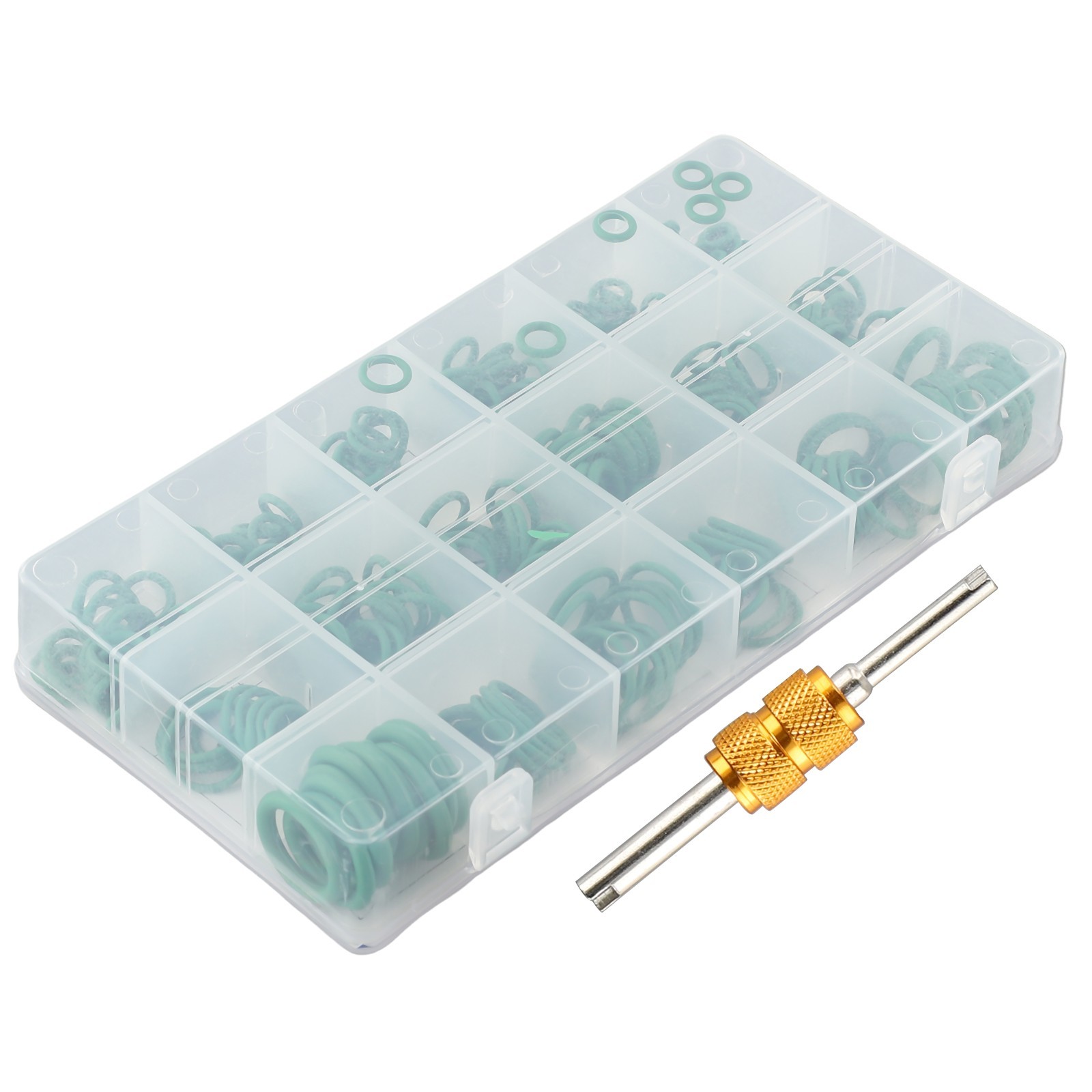 Fabriqué à partir d'un matériau en caoutchouc (nitrile butadiène hydrogéné), résistant à l'huile, au pour gaz, à l'eau, à l'alcool à haute température et à haute pression. 1 x Valve Core Remover. 1 x 270pcs Sealing O-rings Set.