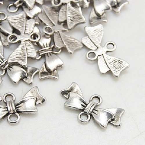 LOT de 24 PERLES CONNECTEURS NOEUD 20x10mm ARGENTES SANS NICKEL bowknot sautoirs