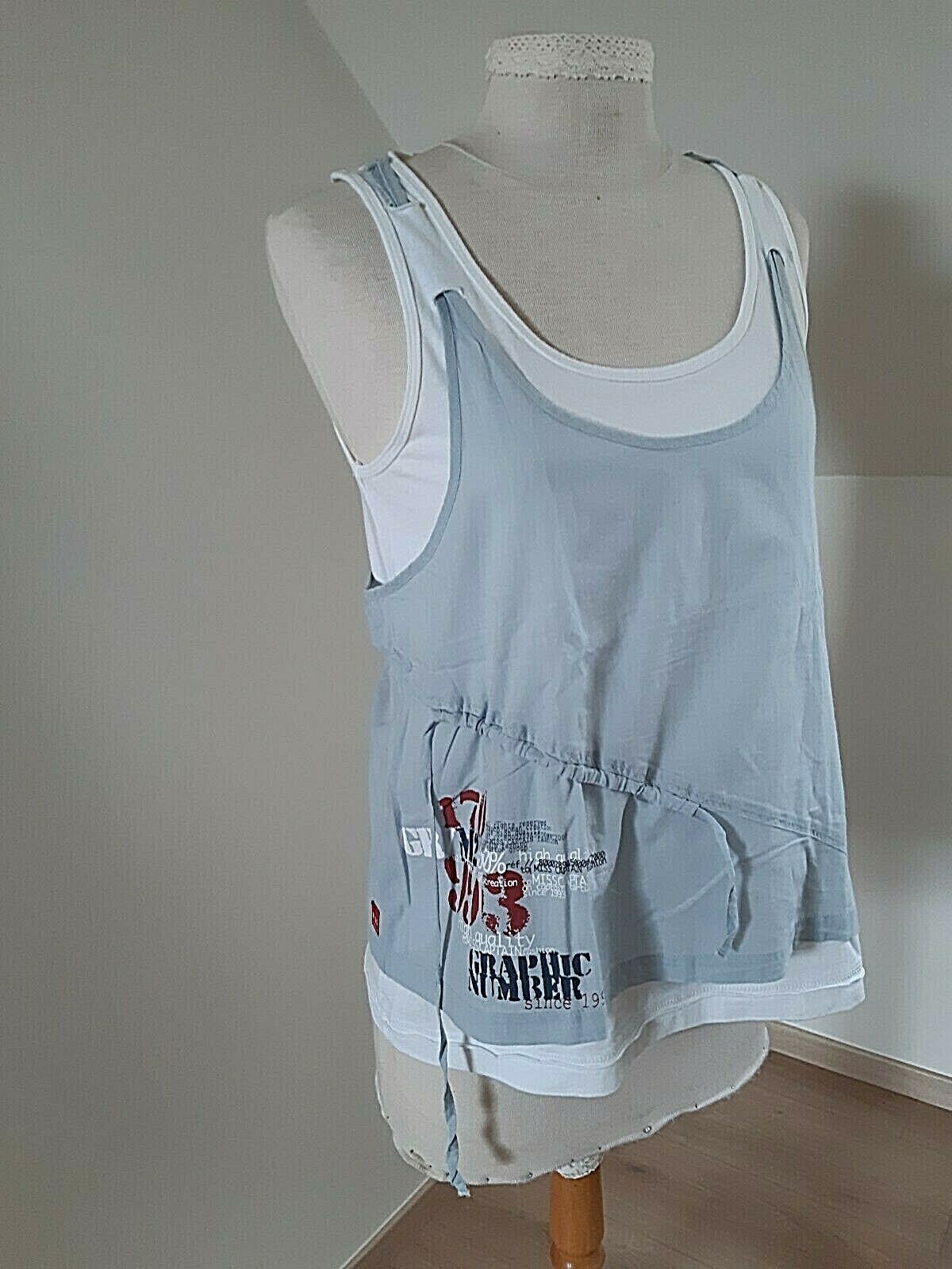 JOLI HAUT, TUNIQUE ,à bretelles ,MISS CAPITAIN, gris et blanc , 38, M, neuve