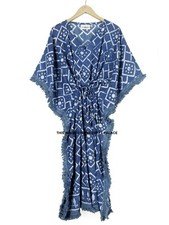 Article - Abstract Designer Cotton Caftan. Utilisation - tunique, robe, maxi, couverture de bikini, usure de plage, kaftan, etc. Buste / taille de poitrine - s'adapter à 64 "pouces Ce beau Kaftan ou peut être appelé comme tunique est fait avec du coton de qualité super fine et les dessins ont été fabriqués par des impressions à main. * La face avant a une base bleu indigo sur le motif abstrait de couleur blanc a été conçu * Ces Kaftan sont fabriqués sur un tissu de coton de la meilleure qualité. * V Forme du cou qui est de 8 "pouces de profondeur. Très confortable à porter par temps chaud ou froid. Soins de lavage: Hand Cum Machine Wash dans l'eau froide. * Les acheteurs internationaux sont responsables des droits et taxes de leur pays. * Nous expédions l'article dans le monde entier par F.