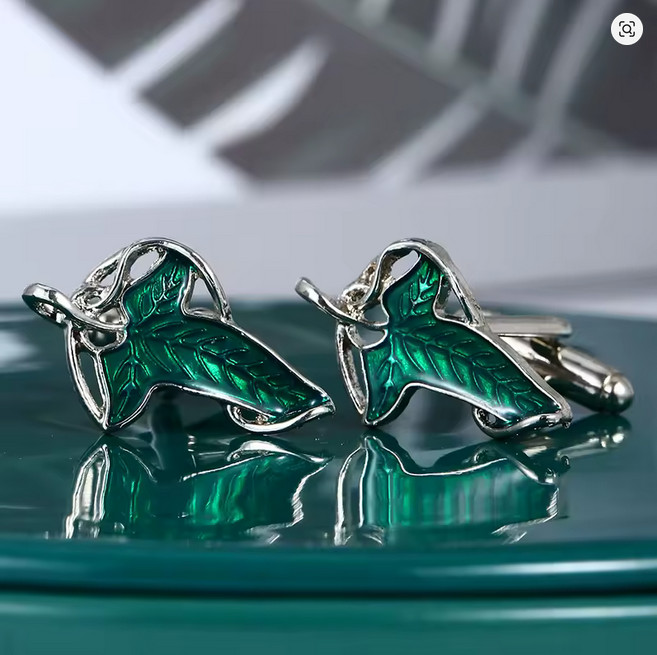 LE SEIGNEUR DES ANNEAUX : BOUTONS DE MANCHETTES DE LA LORIEN + POCHETTE