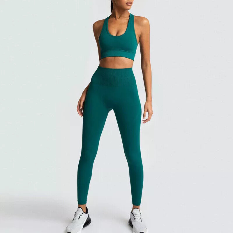 Ensemble De Yoga Femme En Maille Pantalons Leggings Top Tuta Corsa Vert Y020