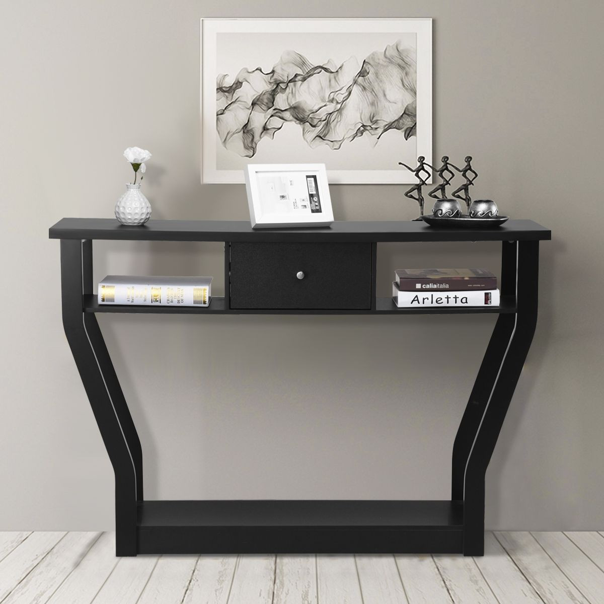 Parfait pour l’entrée, salon, couloir, chambre. 1 x Table console. Les pieds incurvés ajoutent une touche de style. Cette table moderne est compatible avec tous les styles de décoration. Capacité de poids du plateau de la table : 10 kg.