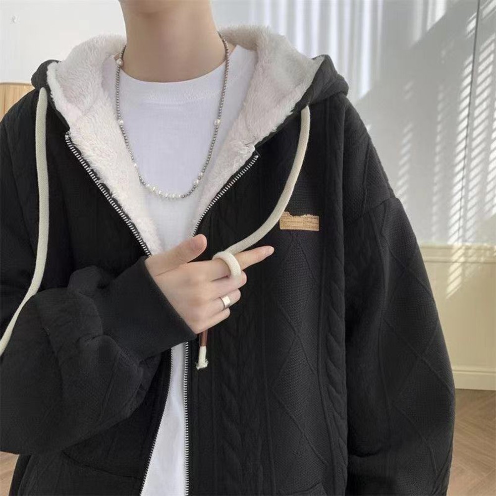 Veste à capuche décontractée homme plus polaire épaisse coupe ample coupe-ve