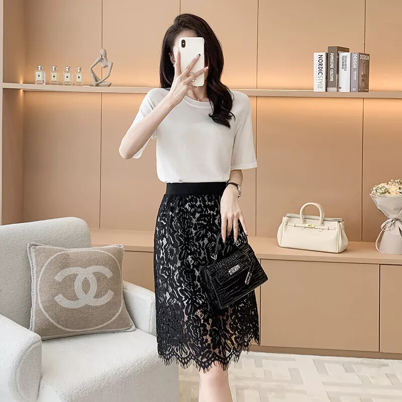 Robe Ensemble Femme Set Costume Chemise Jupe T-Shirt Slim Blanc Noir 55695