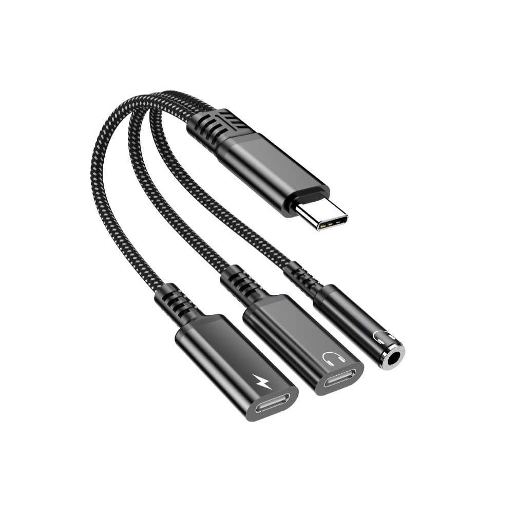 Adaptateur de Charge Casque USB C 3 en 1 avec Jack AUX 35mm pour iPhone et Plus
