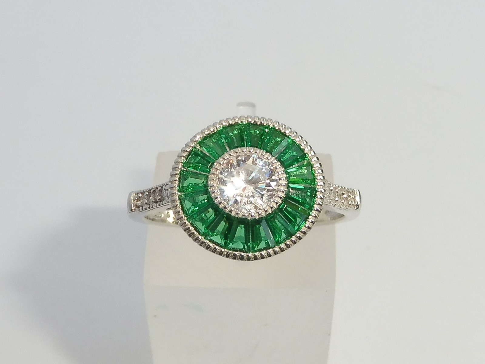 Mesdames Bague en argent sterling 925 avec saphir et émeraude style Halo
