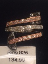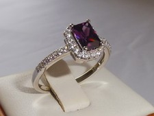 Le métal est en argent sterling 925 avec une finition en platine. 3 mm de long sur 2 mm de large La bague a un diamètre de 5 mm de diamètre avec des pierres taillées en baguette. Il y a une finition milgrain à la bague.
