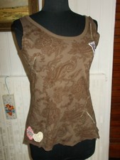 Top tee shirt Tunique coton noir DESIGUAL M 36/38 Sans manches imprimé fleurs