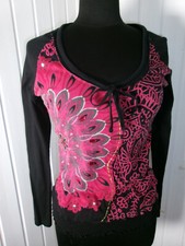 Top tee-shirt Tunique DESIGUAL M 36/38 manches courtes PAILLETTES fleurs à nouer