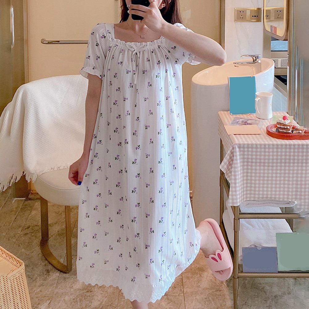 Chemise de nuit femme à manches courtes motif floral pour un confort au quotidi
