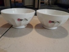 Lot de 2 bols anciens en faïence vintage – Décor floral papillon cerise peint